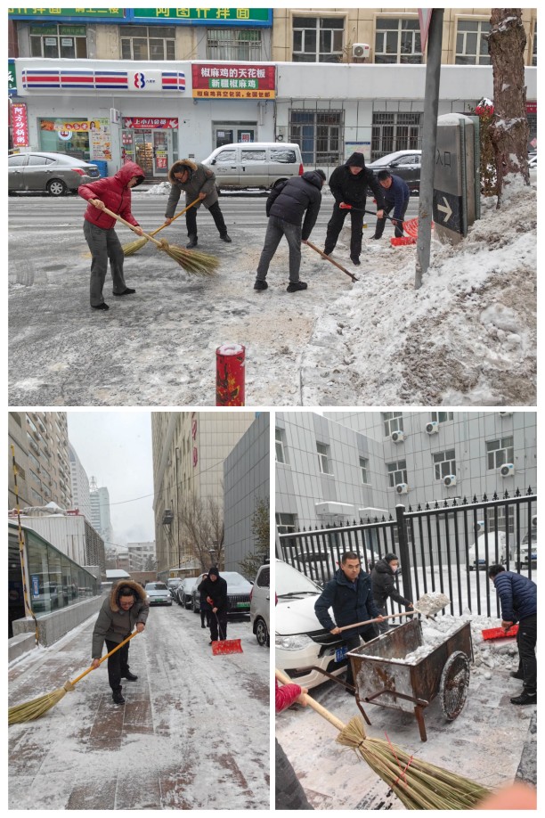 公司黨員志愿者一齊出動(dòng),清掃沿街商鋪路面積雪,志愿者們手持推雪板、掃帚等除雪工具,精神抖擻地奔赴公司周邊的積雪路段。盡管天氣寒冷,積雪深厚,但這絲毫沒(méi)有影響志愿者們的熱情和干勁。