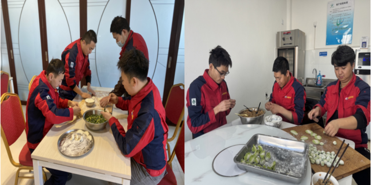 活動最后,大家一塊來到食堂,共同準備除夕夜豐盛的年夜飯,在場職工們個個打起精神來,干勁十足,各自領了任務開始忙活起來,拿案板剁肉、切菜、和面,大家你一言我一語說著,笑著,食堂的歡笑和香味一起飄出場站。大家歡聚一堂共享除夕盛宴,共同舉杯祝福新春。
