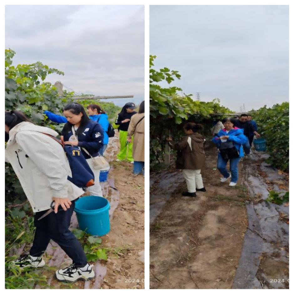 活動(dòng)第二站,來(lái)到三坪農(nóng)場(chǎng)玫瑰香葡萄采摘園。葡萄園內(nèi)一串串飽滿多汁、紫瑩瑩的葡萄掛滿了藤蔓,散發(fā)著誘人的果香。大家拿起工具井然有序的開(kāi)始了采摘活動(dòng)。眾人三五成群,在田間地頭分工合作、密切配合,摘果、裝桶、搬運(yùn).....大家一邊分享采摘技巧,一邊饒有興致地暢談生活中的趣事,歡聲笑語(yǔ)在整個(gè)采摘園回蕩。