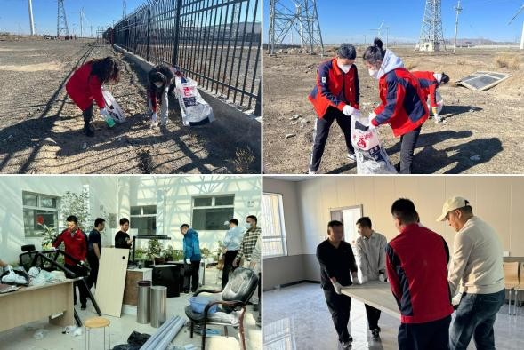 活動通知一經(jīng)發(fā)布,公司各黨支部積極響應,全體黨員對活動展現(xiàn)出極高的熱情。25日下午,公司黨員干部精神飽滿地集合出發(fā),前往達坂城風電場。到達目的地后,所有人分成兩組,分別對場站內(nèi)部和外部進行清潔。大家分工明確、干勁十足,對場站內(nèi)部的桌椅、設(shè)備進行規(guī)整、清潔,對場站周邊的垃圾、石塊等進行全面掃除,不放過任何一個清潔死角。十月的戈壁寒風呼呼作響,但寒冷的天氣澆不滅火熱的心,大家熱火朝天地打掃著場區(qū)的衛(wèi)生,用一次次彎腰踐行著“生態(tài)優(yōu)先、綠色發(fā)展”的理念,使場區(qū)環(huán)境煥然一新,忙碌的身影形成了一道靚麗的風景線?;顒拥淖詈螅蠹液嫌傲裟?,記錄下了這一難忘的時刻。