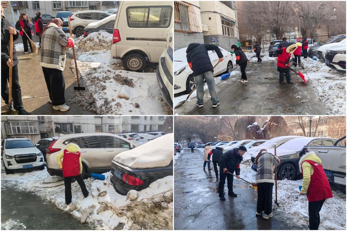 3月5日上午,烏魯木齊市突降大雪,老舊小區(qū)道路積雪結(jié)冰嚴(yán)重,給居民出行帶來安全隱患。為切實踐行“我為群眾辦實事”,保障大家的出行安全,風(fēng)能公司迅速響應(yīng)昆明路社區(qū)號召,組織黨員干部職工迅速行動,與社區(qū)志愿者分成多個小組,帶上掃帚、鐵鍬、推雪板等清潔工具,對公司周圍老舊小區(qū)的環(huán)境衛(wèi)生及路面積雪進行全面整治。隨著中午溫度回升,部分積雪融化導(dǎo)致路面濕滑、泥濘不堪,且小區(qū)設(shè)施老舊、缺乏專業(yè)清雪設(shè)備、這給清掃工作帶來了極大的不便。但志愿者們干勁不減,大家相互配合、齊心協(xié)力,有人用鐵鍬鑿開角落處堆積的厚重冰層,三、兩人合力推運積雪、冰層至集中點,還有人拿著掃帚清掃殘留的雪渣,防止路面再次結(jié)冰打滑。經(jīng)過數(shù)個小時的奮戰(zhàn),及時消除了老舊小區(qū)因積雪結(jié)冰帶來的安全隱患,小區(qū)路面環(huán)境煥然一新。