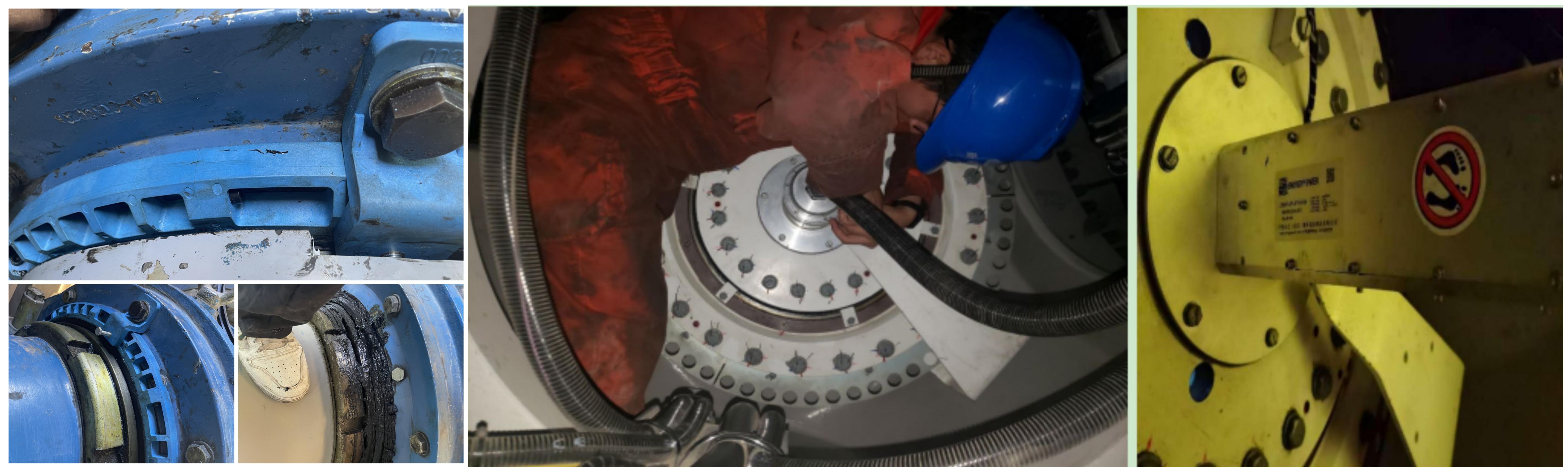 此次在開展常規(guī)檢修和消缺的基礎(chǔ)上,還同步實施了多個技改項目,檢修班組堅持從設(shè)備小技小改入手,提高設(shè)備運行穩(wěn)定性,降低設(shè)備檢修復(fù)雜性。因本次技改涉及的作業(yè)面廣、交叉點多,檢修班組在保證安全、質(zhì)量的同時,必須統(tǒng)籌考慮,慎之又慎,確保各項工作齊頭并進,按時完成。各參檢人員緊盯任務(wù)不放松,克服時間緊、工作量大、安全隱患多等困難,扎實開展技改工作,保質(zhì)保量地完成了非固態(tài)金屬滑環(huán)技改、主軸軸承密封等技術(shù)改進,著力解決了一批影響工作效率、發(fā)電能力、安全隱患的技術(shù)難題。